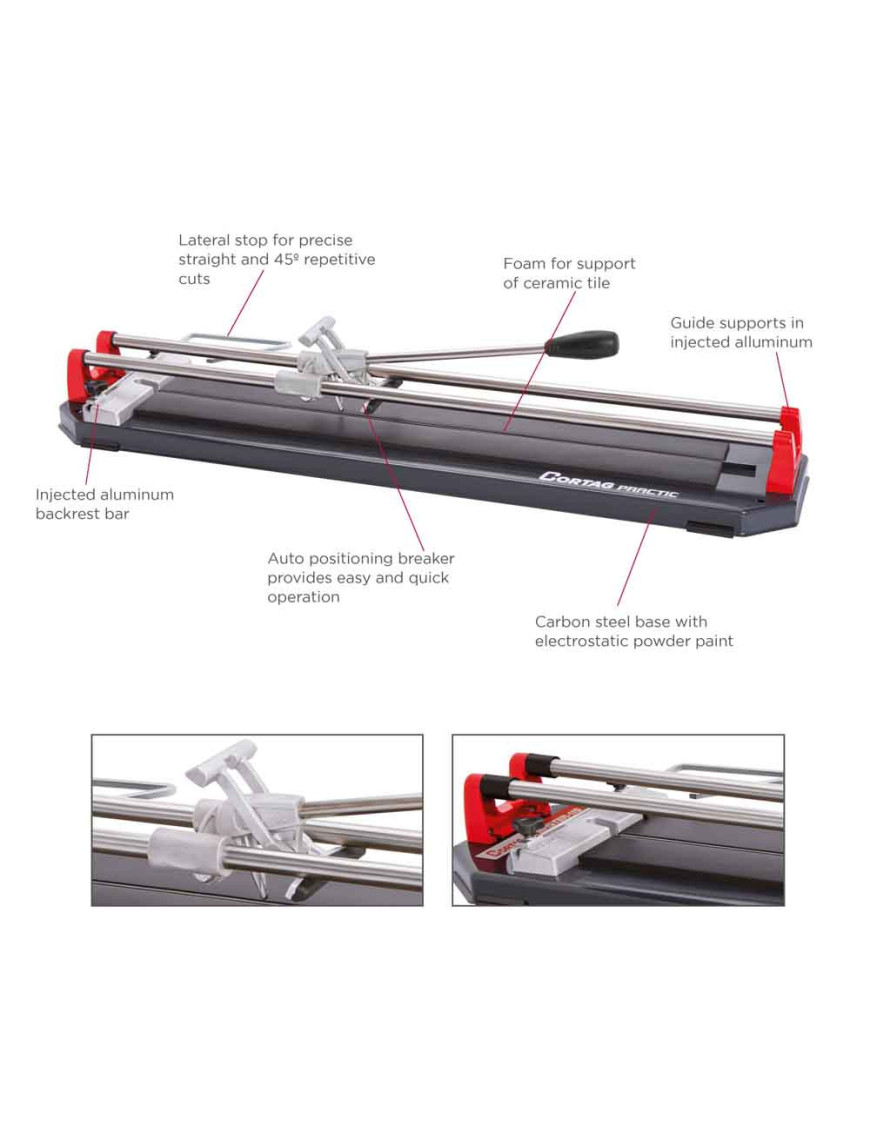 It is indicated for straight cutting of porcelain tiles up to 90 cm long.