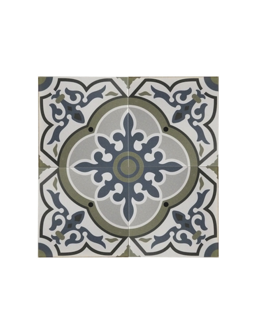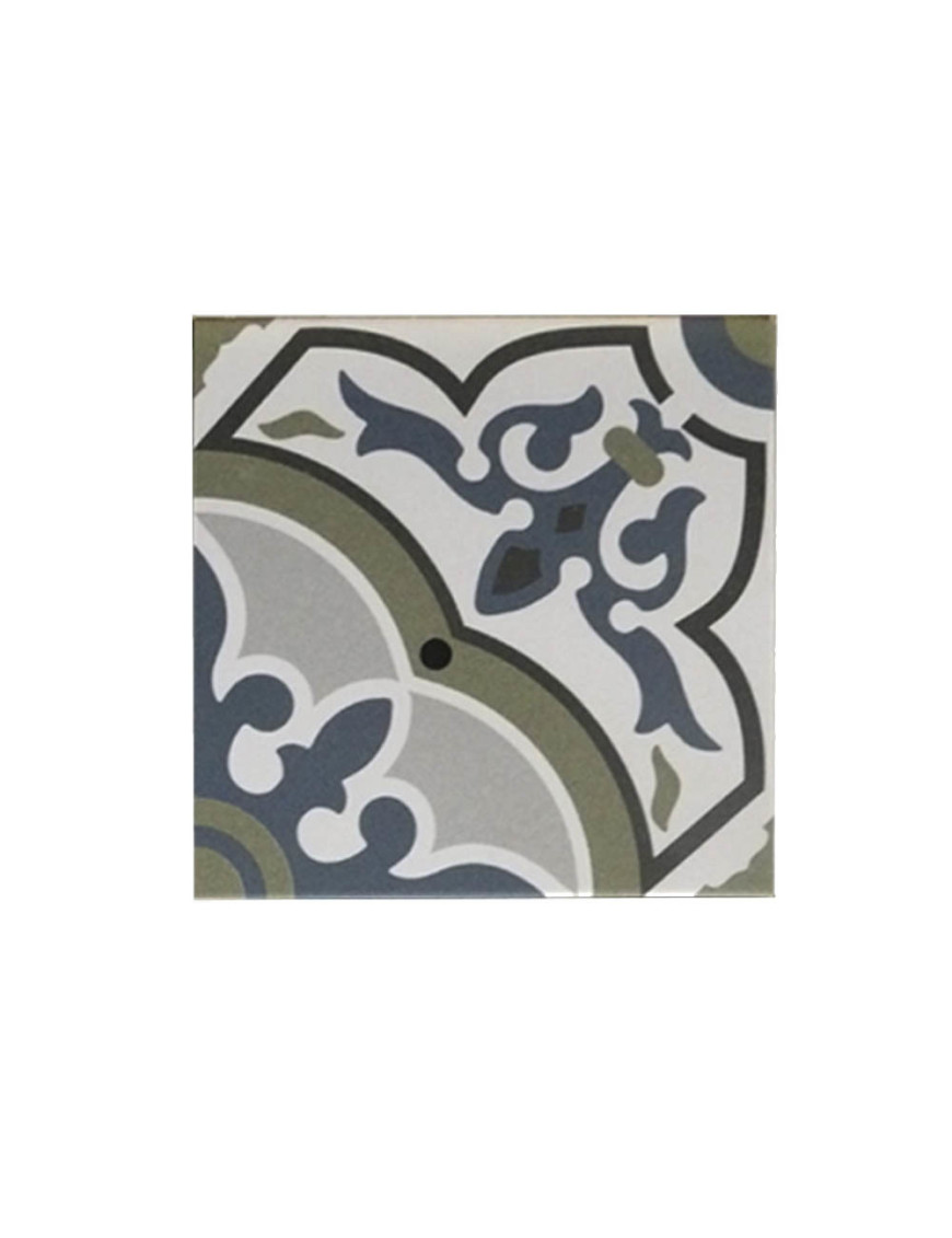 Ce grès cérame imitation hydraulique est en vente par cartons de 1,04 mètres carrés.