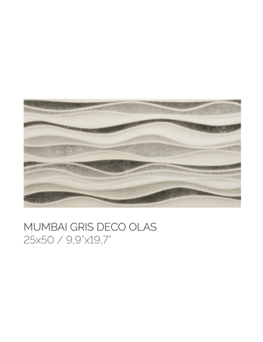 MUMBAI GRIS DECOR OLAS 25X50 MUR EN PÂTE ROUGE