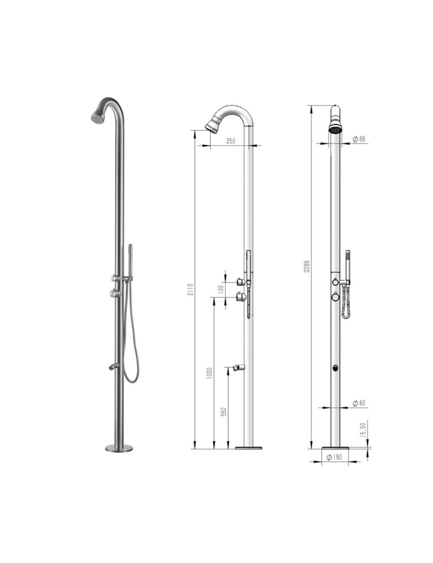 Douches extérieures en acier inoxydable 2 eaux